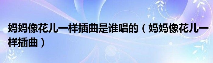 关于妈妈像花儿一样插曲是谁唱的,妈妈像花儿一样插曲这个很多人还不知道,今天菲菲来为大家解答以上的问题,现在让我们一起来看看吧!