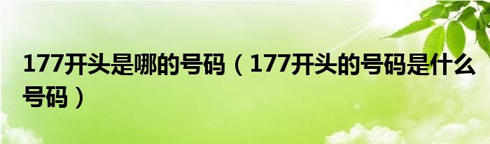 177开头是哪的号码(177开头的号码是什么号码)