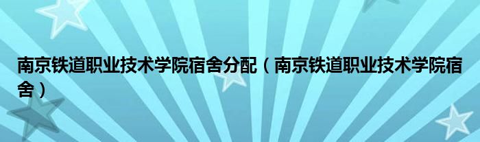 南京铁道职业技术学院宿舍分配(南京铁道职业技术学院宿舍)