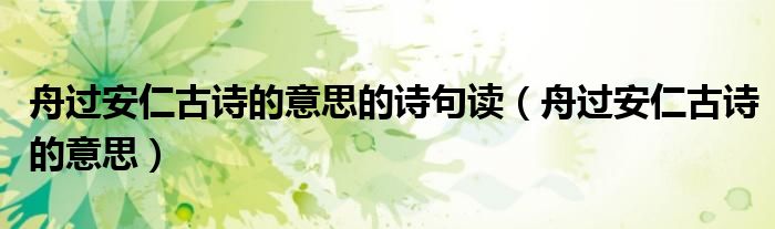 舟过安仁古诗的意思的诗句读(舟过安仁古诗的意思)