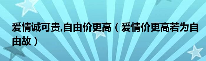 关于爱情诚可贵,自由价更高,爱情价更高若为自由故这个很多人还不知道,今天菲菲来为大家解答以上的问题,现在让我们一起来看看吧!