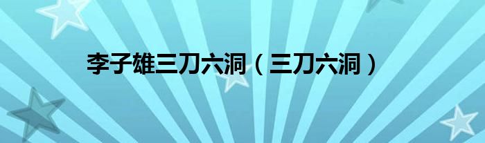 关于李子雄三刀六洞,三刀六洞这个很多人还不知道,今天菲菲来为大家解答以上的问题,现在让我们一起来看看吧!