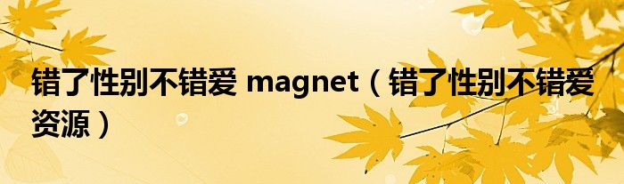 关于错了性别不错爱 magnet,错了性别不错爱 资源这个很多人还不知道,今天菲菲来为大家解答以上的问题,现在让我们一起来看看吧!