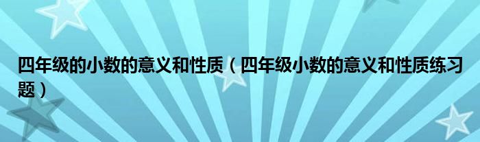 关于四年级的小数的意义和性质,四年级小数的意义和性质练习题这个很多人还不知道,今天菲菲来为大家解答以上的问题,现在让我们一起来看看吧!