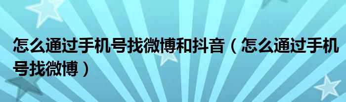 怎么通过手机号找微博和抖音(怎么通过手机号找微博)