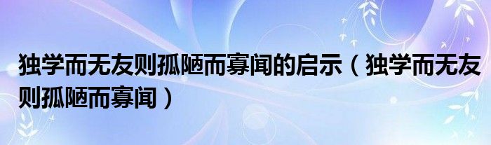 关于独学而无友则孤陋而寡闻的启示,独学而无友则孤陋而寡闻这个很多人还不知道,今天菲菲来为大家解答以上的问题,现在让我们一起来看看吧!
