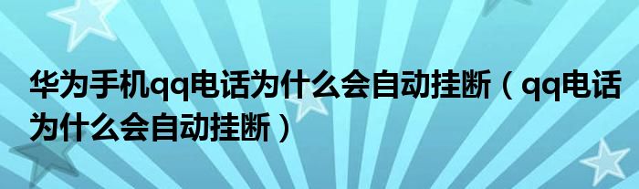 大家好,小晋来为大家解答以下问题,关于华为手机qq电话为什么会自动挂断,qq电话为什么会自动挂断很多人还不知道,今天让我们一起来看看吧!
