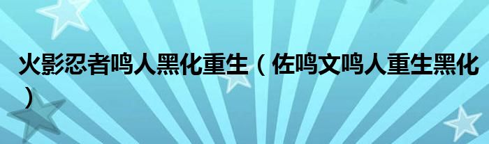 关于火影忍者鸣人黑化重生,佐鸣文鸣人重生黑化这个很多人还不知道,今天菲菲来为大家解答以上的问题,现在让我们一起来看看吧!