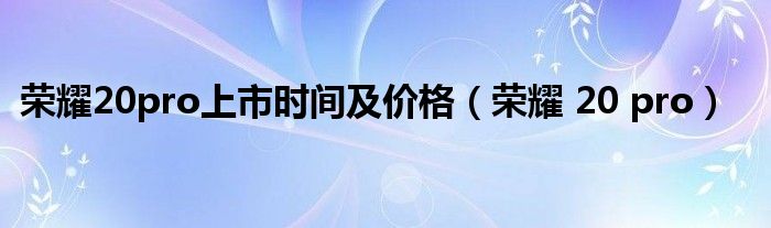 大家好,来宝来为大家解答以下问题,荣耀20pro上市时间及价格,荣耀 20 pro很多人还不知道,今天让我们一起来看看吧!