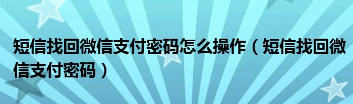 大家好,小晋来为大家解答以下问题,关于短信找回微信支付密码怎么操作,短信找回微信支付密码很多人还不知道,今天让我们一起来看看吧!
