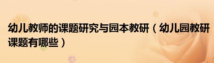 关于幼儿教师的课题研究与园本教研,幼儿园教研课题有哪些这个很多人还不知道,今天菲菲来为大家解答以上的问题,现在让我们一起来看看吧!