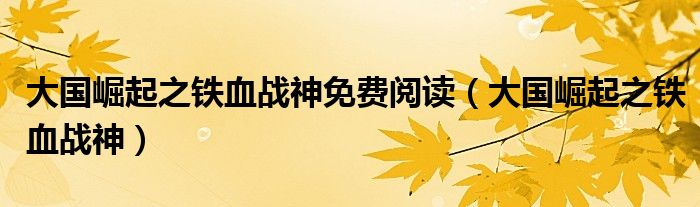 关于大国崛起之铁血战神免费阅读,大国崛起之铁血战神这个很多人还不知道,今天菲菲来为大家解答以上的问题,现在让我们一起来看看吧!