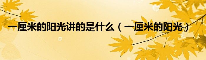 关于一厘米的阳光讲的是什么,一厘米的阳光这个很多人还不知道,今天菲菲来为大家解答以上的问题,现在让我们一起来看看吧!
