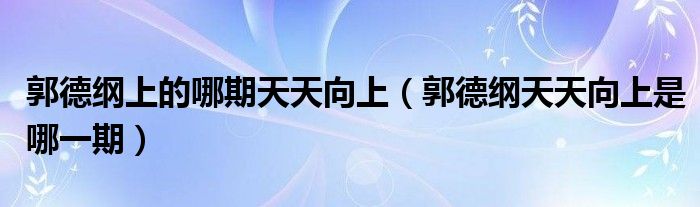 大家好,小晋来为大家解答以下问题,关于郭德纲上的哪期天天向上,郭德纲天天向上是哪一期很多人还不知道,今天让我们一起来看看吧!