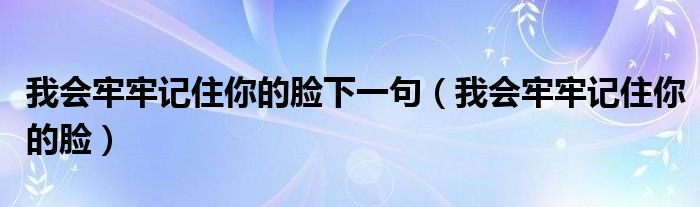 关于我会牢牢记住你的脸下一句,我会牢牢记住你的脸这个很多人还不知道,今天菲菲来为大家解答以上的问题,现在让我们一起来看看吧!
