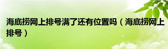 大家好,小晋来为大家解答以下问题,关于海底捞网上排号满了还有位置吗,海底捞网上排号很多人还不知道,今天让我们一起来看看吧!