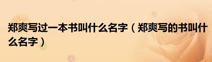 郑爽写过一本书叫什么名字(郑爽写的书叫什么名字)