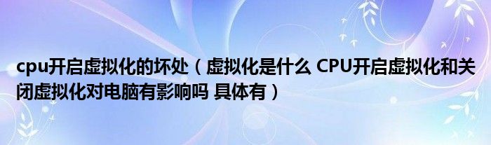 关于cpu开启虚拟化的坏处,虚拟化是什么 CPU开启虚拟化和关闭虚拟化对电脑有影响吗 具体有这个很多人还不知道,今天菲菲来为大家解答以上的问题,现在让我们一起来看看吧!