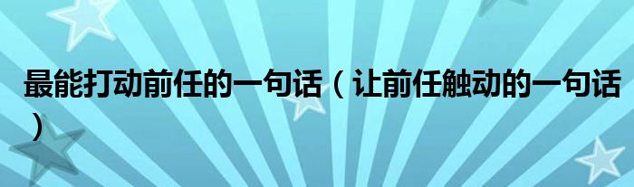 大家好,小晋来为大家解答以下问题,关于最能打动前任的一句话,让前任触动的一句话很多人还不知道,今天让我们一起来看看吧!