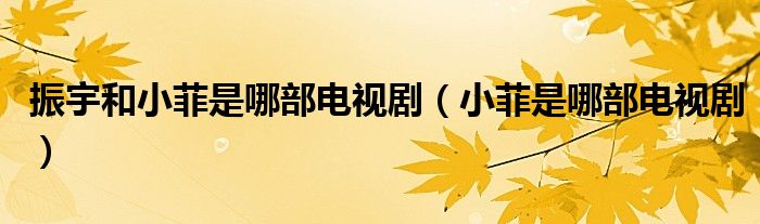 大家好,小晋来为大家解答以下问题,关于振宇和小菲是哪部电视剧,小菲是哪部电视剧很多人还不知道,今天让我们一起来看看吧!