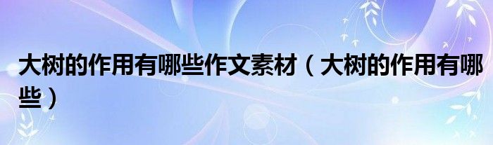 大家好,小晋来为大家解答以下问题,关于大树的作用有哪些作文素材,大树的作用有哪些很多人还不知道,今天让我们一起来看看吧!