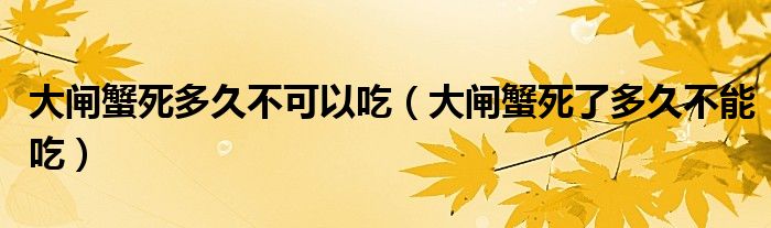 大家好,小晋来为大家解答以下问题,关于大闸蟹死多久不可以吃,大闸蟹死了多久不能吃很多人还不知道,今天让我们一起来看看吧!