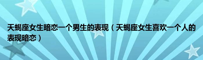 关于天蝎座女生暗恋一个男生的表现,天蝎座女生喜欢一个人的表现暗恋这个很多人还不知道,今天菲菲来为大家解答以上的问题,现在让我们一起来看看吧!