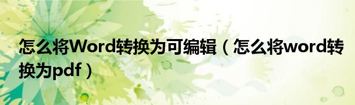 大家好,小晋来为大家解答以下问题,关于怎么将Word转换为可编辑,怎么将word转换为pdf很多人还不知道,今天让我们一起来看看吧!