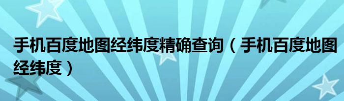 大家好,小晋来为大家解答以下问题,关于手机百度地图经纬度精确查询,手机百度地图经纬度很多人还不知道,今天让我们一起来看看吧!