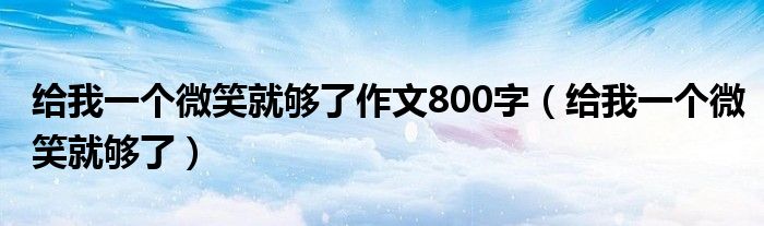 大家好,小晋来为大家解答以下问题,关于给我一个微笑就够了作文800字,给我一个微笑就够了很多人还不知道,今天让我们一起来看看吧!