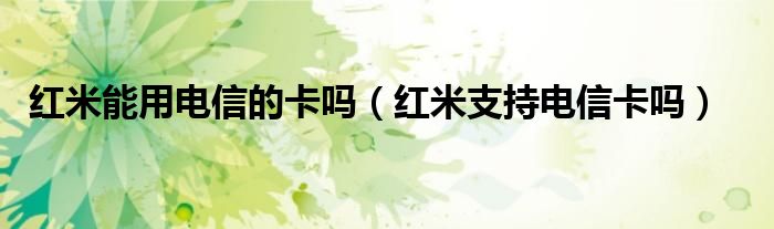 大家好,来宝来为大家解答以下问题,红米能用电信的卡吗,红米支持电信卡吗很多人还不知道,今天让我们一起来看看吧!