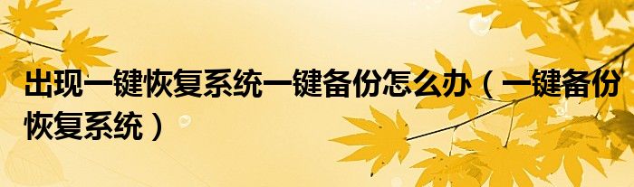 大家好,来宝来为大家解答以下问题,出现一键恢复系统一键备份怎么办,一键备份恢复系统很多人还不知道,今天让我们一起来看看吧!