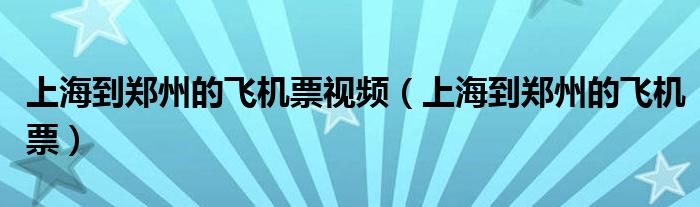 关于上海到郑州的飞机票视频,上海到郑州的飞机票这个很多人还不知道,今天菲菲来为大家解答以上的问题,现在让我们一起来看看吧!