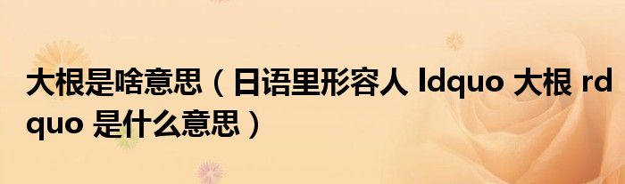 关于大根是啥意思,日语里形容人 ldquo 大根 rdquo 是什么意思这个很多人还不知道,今天菲菲来为大家解答以上的问题,现在让我们一起来看看吧!