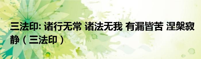 关于三法印: 诸行无常 诸法无我 有漏皆苦 涅槃寂静,三法印这个很多人还不知道,今天菲菲来为大家解答以上的问题,现在让我们一起来看看吧!
