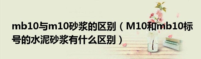 关于mb10与m10砂浆的区别,M10和mb10标号的水泥砂浆有什么区别这个很多人还不知道,今天菲菲来为大家解答以上的问题,现在让我们一起来看看吧!