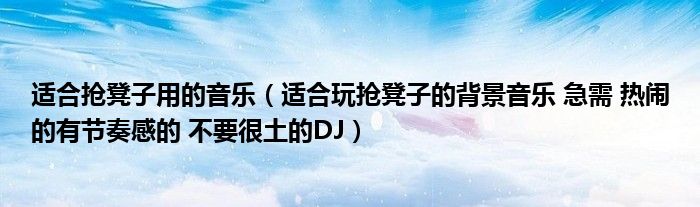 关于适合抢凳子用的音乐,适合玩抢凳子的背景音乐 急需 热闹的有节奏感的 不要很土的DJ这个很多人还不知道,今天菲菲来为大家解答以上的问题,现在让我们一起来看看吧!