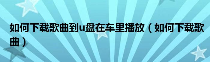 大家好,来宝来为大家解答以下问题,如何下载歌曲到u盘在车里播放,如何下载歌曲很多人还不知道,今天让我们一起来看看吧!