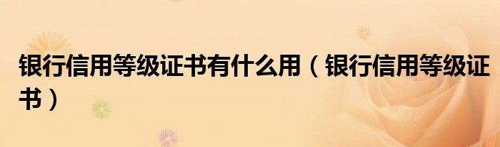 关于银行信用等级证书有什么用,银行信用等级证书这个很多人还不知道,今天菲菲来为大家解答以上的问题,现在让我们一起来看看吧!