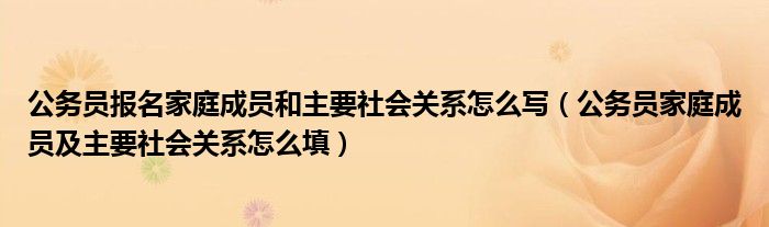 关于公务员报名家庭成员和主要社会关系怎么写,公务员家庭成员及主要社会关系怎么填这个很多人还不知道,今天菲菲来为大家解答以上的问题,现在让我们一起来看看吧!