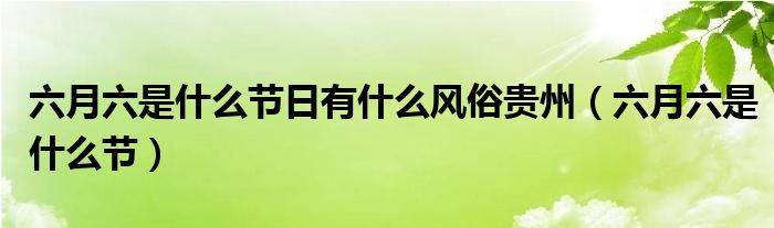 关于六月六是什么节日有什么风俗贵州,六月六是什么节这个很多人还不知道,今天菲菲来为大家解答以上的问题,现在让我们一起来看看吧!
