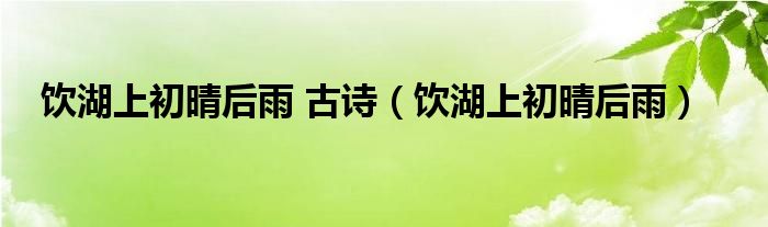 关于饮湖上初晴后雨 古诗,饮湖上初晴后雨这个很多人还不知道,今天菲菲来为大家解答以上的问题,现在让我们一起来看看吧!