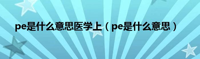 关于pe是什么意思医学上,pe是什么意思这个很多人还不知道,今天菲菲来为大家解答以上的问题,现在让我们一起来看看吧!