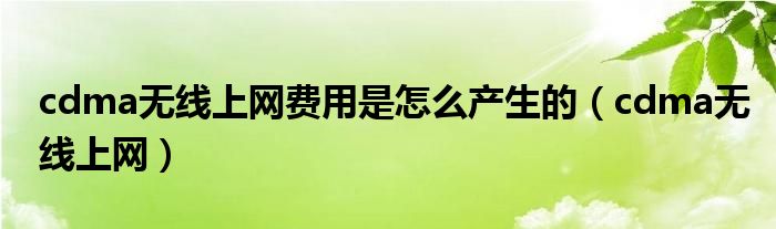 cdma无线上网费用是怎么产生的(cdma无线上网)