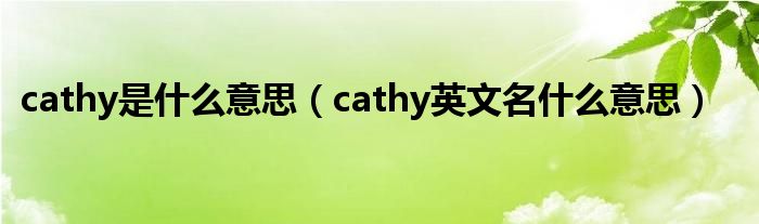 关于cathy是什么意思,cathy英文名什么意思这个很多人还不知道,今天菲菲来为大家解答以上的问题,现在让我们一起来看看吧!