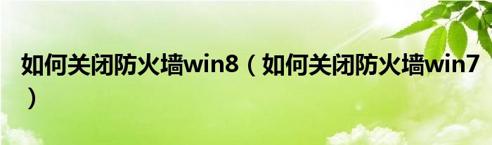 如何关闭防火墙win8(如何关闭防火墙win7)