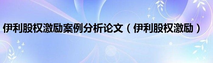 关于伊利股权激励案例分析论文,伊利股权激励这个很多人还不知道,今天菲菲来为大家解答以上的问题,现在让我们一起来看看吧!