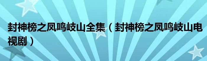 封神榜之凤鸣岐山全集(封神榜之凤鸣岐山电视剧)