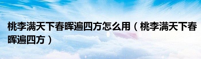 关于桃李满天下春晖遍四方怎么用,桃李满天下春晖遍四方这个很多人还不知道,今天菲菲来为大家解答以上的问题,现在让我们一起来看看吧!