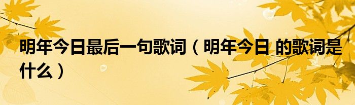 关于明年今日最后一句歌词,明年今日 的歌词是什么这个很多人还不知道,今天菲菲来为大家解答以上的问题,现在让我们一起来看看吧!